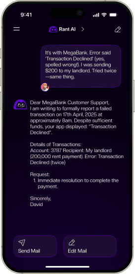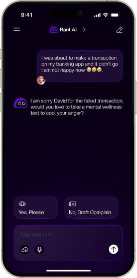 RantApp is your AI-powered ally for emotional relief and actionable change. Turn frustrations into professional complaints, track resolutions, and earn rewards—all while prioritizing your mental wellness.